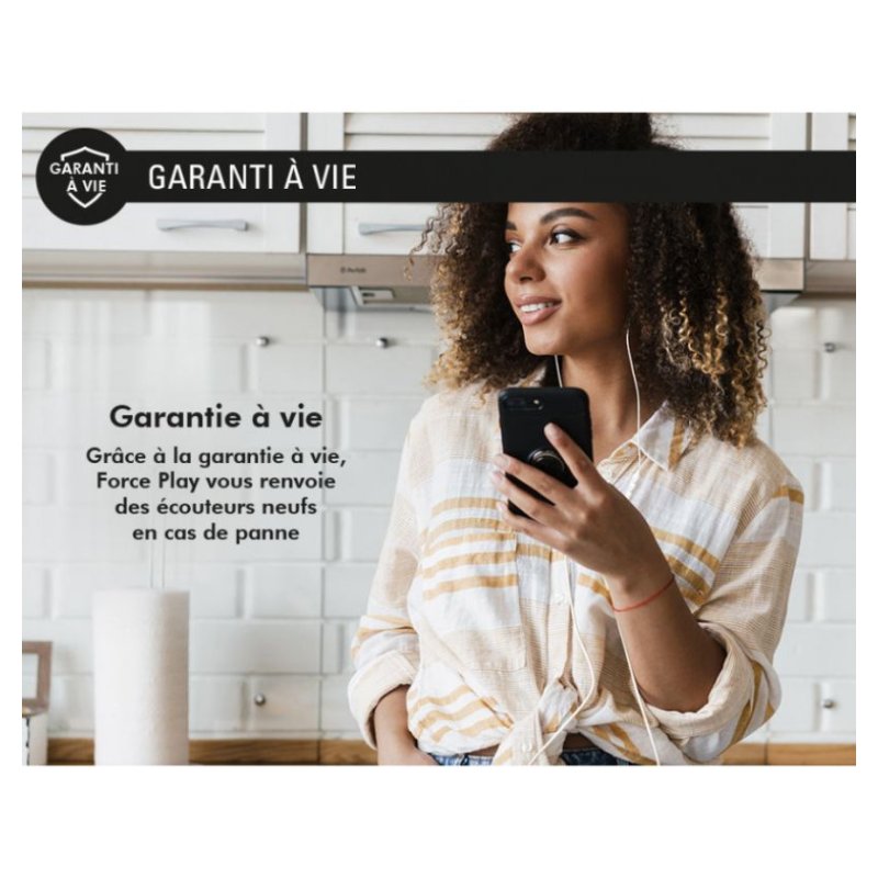 Une conception soignée pour un ajustement parfait qui garantit confort d'écoute et maintien. Les écouteurs filaires Force Play épousent la forme de l'oreille pour une qualité d'écoute optimale et vous accompagnent tout au long de la journée, pour le travail comme pour les loisirs.