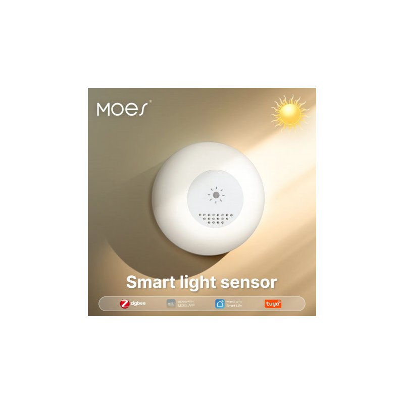 Le détecteur de luminosité MOES ZSS-QY-LS-C-MS est un capteur Zigbee conçu pour mesurer en temps réel l’intensité lumineuse de votre environnement. Il permet d’automatiser vos éclairages et équipements selon la lumière naturelle disponible.