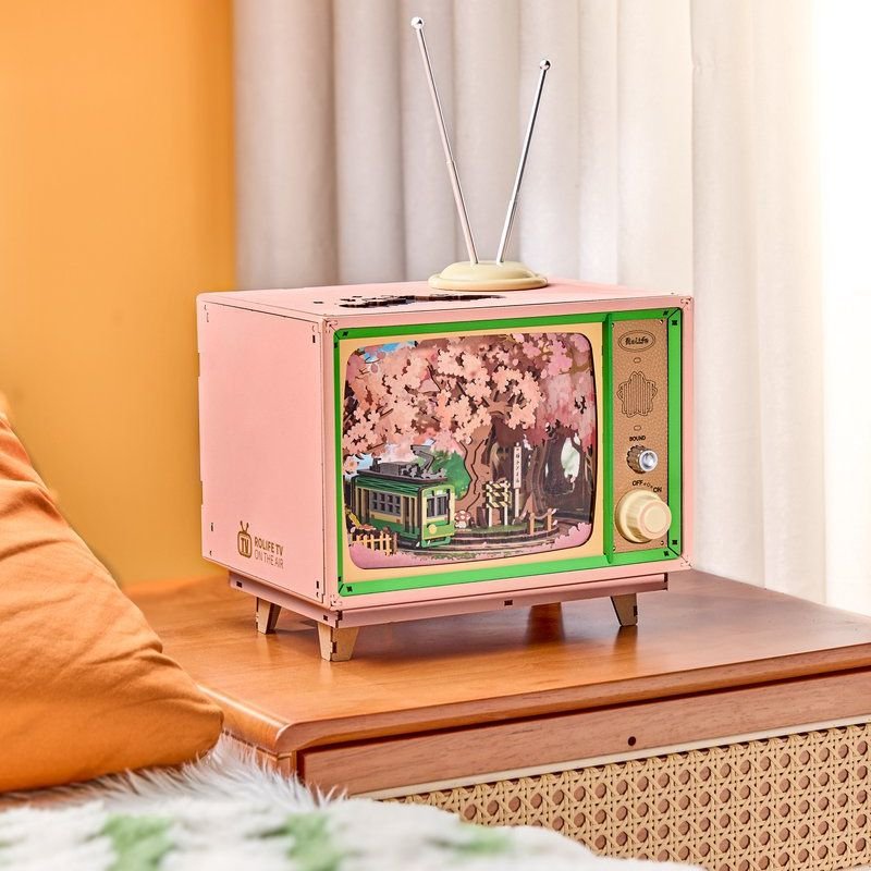 Le Sakura Dreamy Tour est une boîte à musique vintage en forme de télévision, mêlant scène printanière japonaise, lumières douces, mélodies apaisantes et puzzle assemblé sans colle pour créer une pièce décorative au charme rétro.
